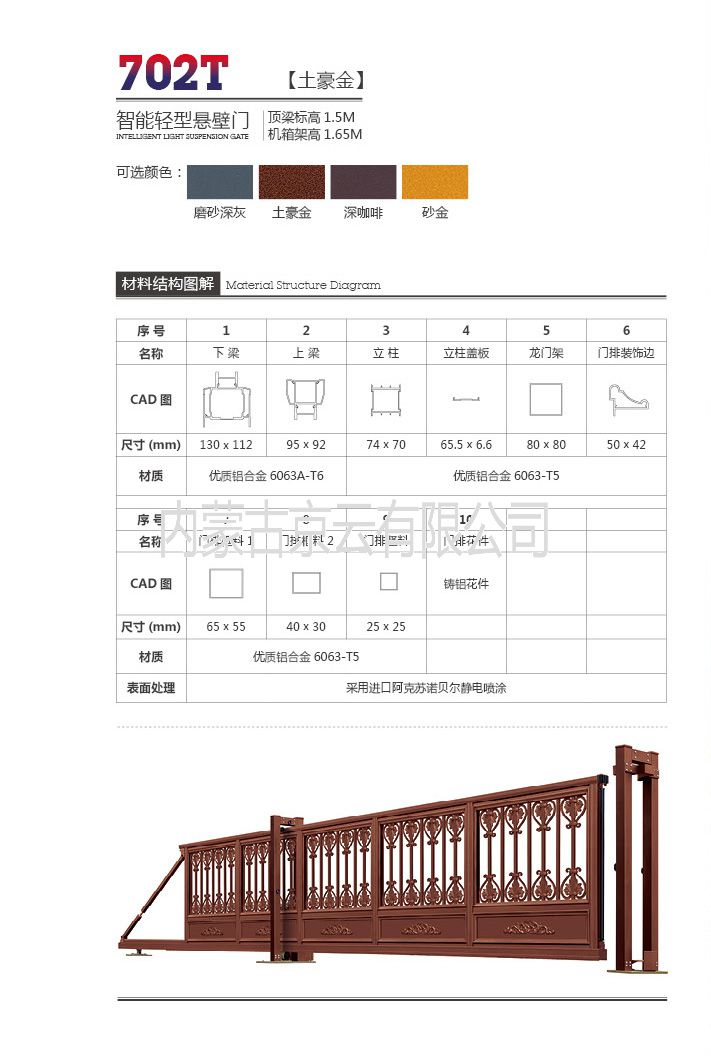 • 產(chǎn)品分類:702T土豪金智能輕型懸臂門